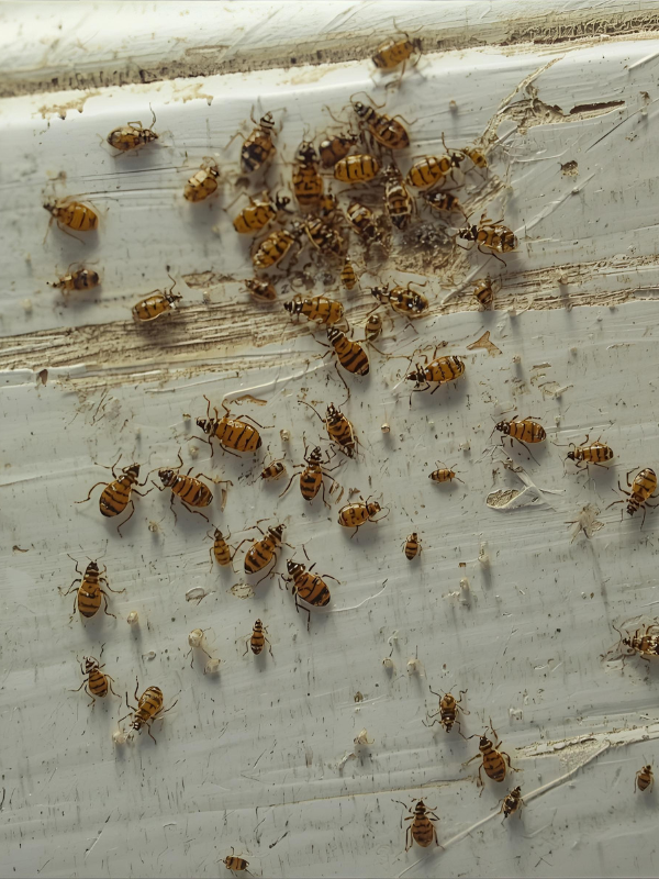 They can hide behind baseboards, headboards, electrical switch plates, picture frames, even wallpaper. Once fertilized, a female will lay 5-6 eggs per day (That’s 300-500 lifetime). The eggs hatch into a nymph in 10-14 days.