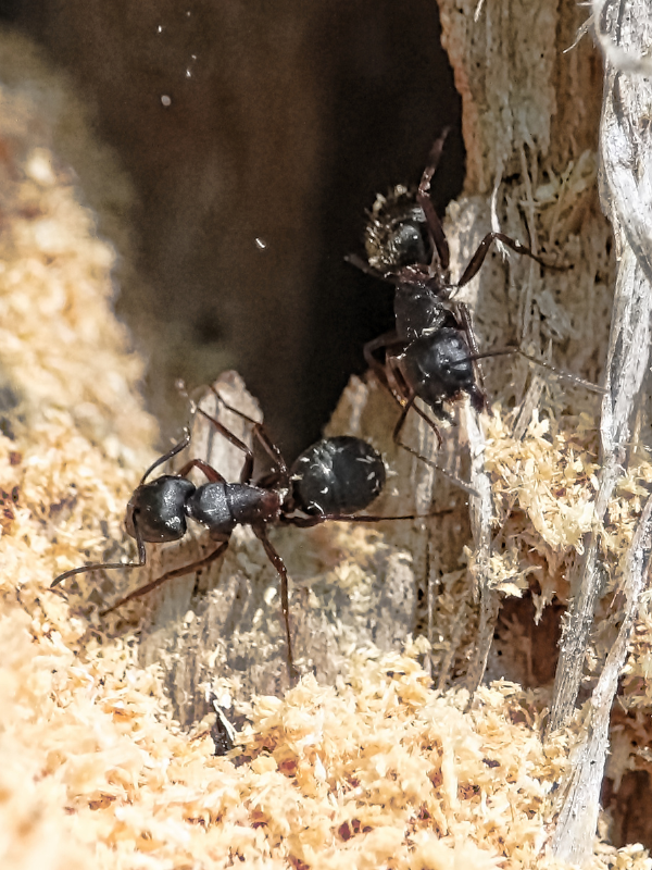 Carpenter Ants in Vancouver Frequently nest in moisture-damaged wood inside houses and rotten stumps, trees, retaining walls, etc… around the property.